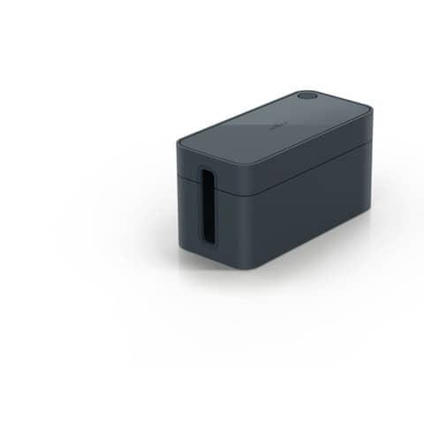 Elegante scatola nascondi-cavi per cavi e multi presa da 3 entrate. Dotata di due fessure laterali rivestite in gomma per il passaggio dei cavi, un facile trasporto e la circolazione ideale dell'aria. Il coperchio ha una pratica aperura circolare richiudibile ideale per i cavi di ricarica dei telefoni cellulari. Realizzata in plastica ignifuga di alta qualità. I piedini antiscivolo garantiscono un'ottima stabilità. Dimensioni: 246 x 116 x 128 mm (L x H x P).