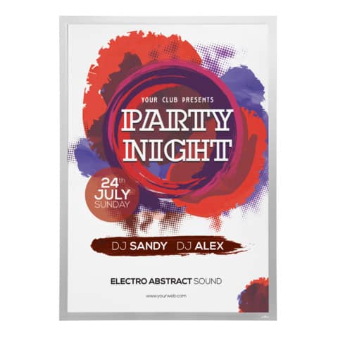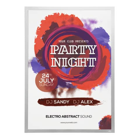 La cornice espositiva DURAFRAME® POSTER è ideale per esporre avvisi, ad esempio, su pareti, vetri e vetrine. I poster possono essere inseriti e sostituiti facilmente grazie alla cornice magnetica . Fissaggio senza bolle grazie alle due bande adesive sul retro. Rimovibile senza lasciare residui da superfici lisce e solide. Resistente al calore fino a 70°. Resistente ai raggi UV fino a 2 anni. Inserto leggibile fronte/retro su superfici in vetro. Capacità: 2 poster da 150g/mq. Cornice identica da entrambi i lati. Applicabile sia in formato verticale che orizzontale. Formato inserto 700x1000 mmArgento metallizzato.