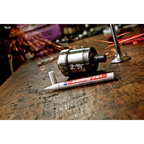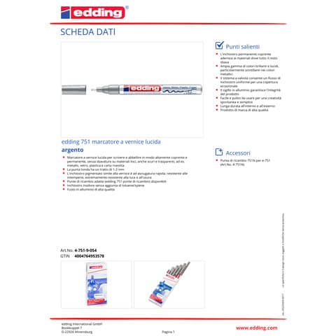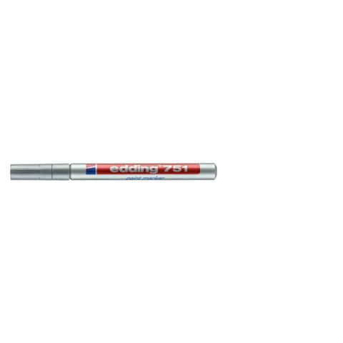 Marcatore a vernice, punta conica 1-2 mm. Vernice pigmentata, coprente, permanente, inodore, con ''effetto smaltato'', ideale per dipingere, marcare, e scrivere anche su superfici scure e trasparenti. Asciuga rapidamente ed è estremamente resistente alla luce, all'acqua ed allo sfregamento. Il fusto in alluminio garantisce una perfetta conservazione a lungo termine dell'inchiostro. Punta in fibra sintetica Colore: argento.