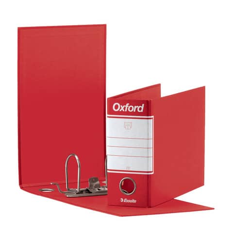 Il registratore Oxford rappresenta il simbolo dell’elevata qualità della produzione Esselte. Oxford è il registratore più venduto sul mercato italiano e vanta innumerevoli tentativi di imitazione. La resistente struttura in cartone da 2 mm rivestita di elegante carta goffrata, rende questo prodotto inconfondibile. Oxford si distingue per il raffinato rivestimento interno di colore pendant con la superficie esterna. Dorso: 8 cm. Modello Memorandum. Meccanismo N.1. Colore: rosso.