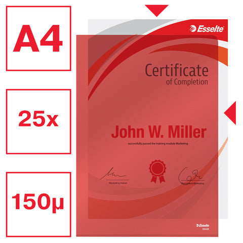 ESSELTE - Cartellina a l in pvc crystal a4 rosso - conf. 25 pz - 554330