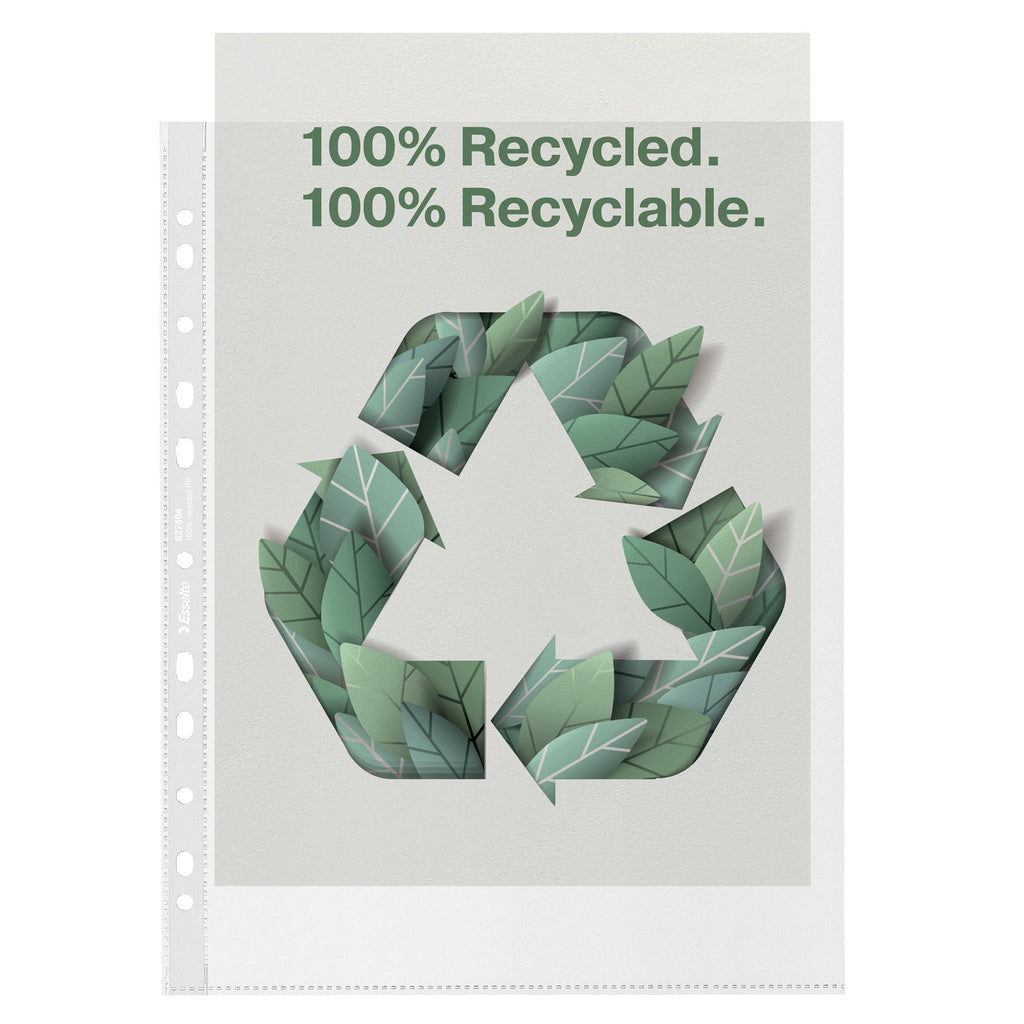 Buste a perforazione universale antiriflesso copy safe in polipropilene riciclato e riciclabile al 100% (contenuto riciclato certificato da ul). Il materiale privo di acidi impedisce che la carta ingiallisca nel tempo. Perfetta per l'archiviazione a lunga durata.