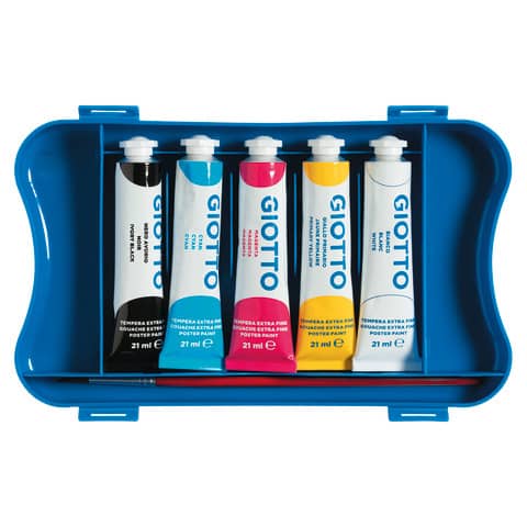 Tempera ultrafine concentrata, in tubetto di alluminio con tappo a vite in plastica. Ideale per pittura, particolarmente ricca di pigmenti e' densa e coprente diluibile con acqua fino ad ottenere effetti di trasparenza, si puo' facilmente miscelare per creare infinite sfumature. Astuccio da 5 tubi da 21ml.