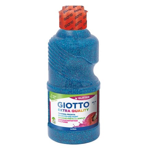 GIOTTO - Tempera pronta glitter in flacone 250 ml ciano glitterato - F53120400 - Confezione risparmio da 2 PZ