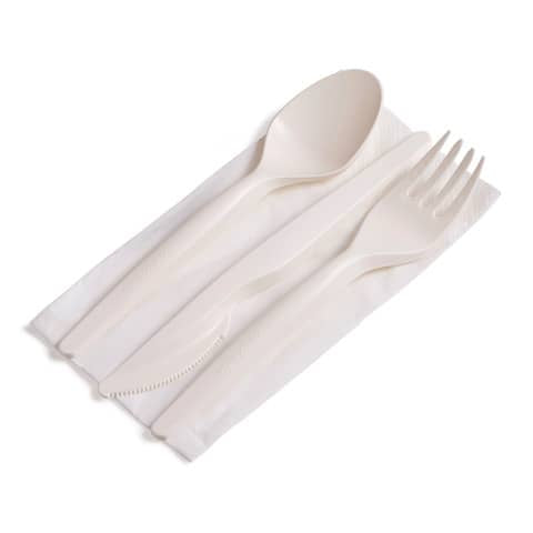 - Descrizione prodotto: set tris - forchetta, coltello, cucchiaio e tovagliolo
