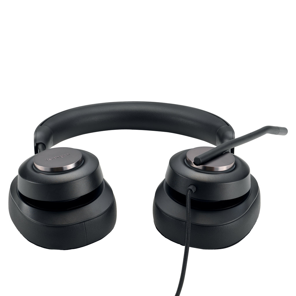 Le cuffie universali plug e play h2000 usb-c di kensington offrono un’esperienza coinvolgente e consentono una maggiore concentrazione, sono dotate di una tecnologia acustica eccezionale e godono di funzioni professionali per la produttivita' con un design over-ear ergonomico. Con cuscinetti in memory foam in gel, microfoni con eliminazione dei rumori, indicatori a led, comandi per la musica, sidetone e altoparlanti dinamici da 40 mm, le cuffie h2000 offrono un’esperienza audio eccezionale.