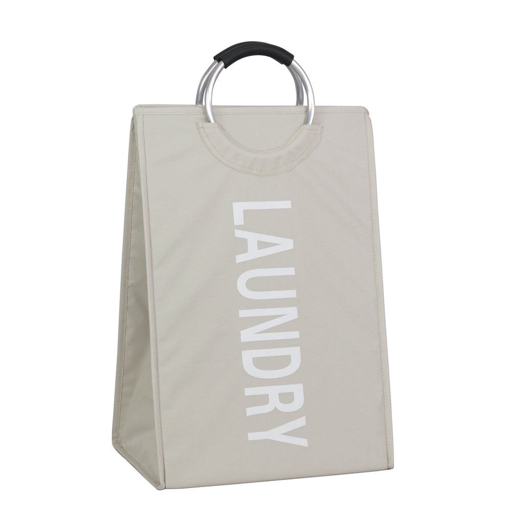 Portabiancheria in poliestere colore beige. Dimensioni: 40x30x70h cm