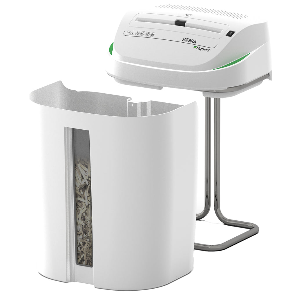 Taglio a striscia 5,8 mm. Distrugge fino a 26-28 fogli (a4 70 gr) / 24-26 fogli (a4 80 gr) per volta, cd/dvd, carte di credito, carte di credito con chip. Coltelli in acciaio temprato non danneggiabili da graffette e punti metallici. Dotato di cesto estraibile per facilitarne lo svuotamento: con finestra anteriore illuminata per controllare il livello di riempimento, non richiede l'uso di sacchetti in plastica.