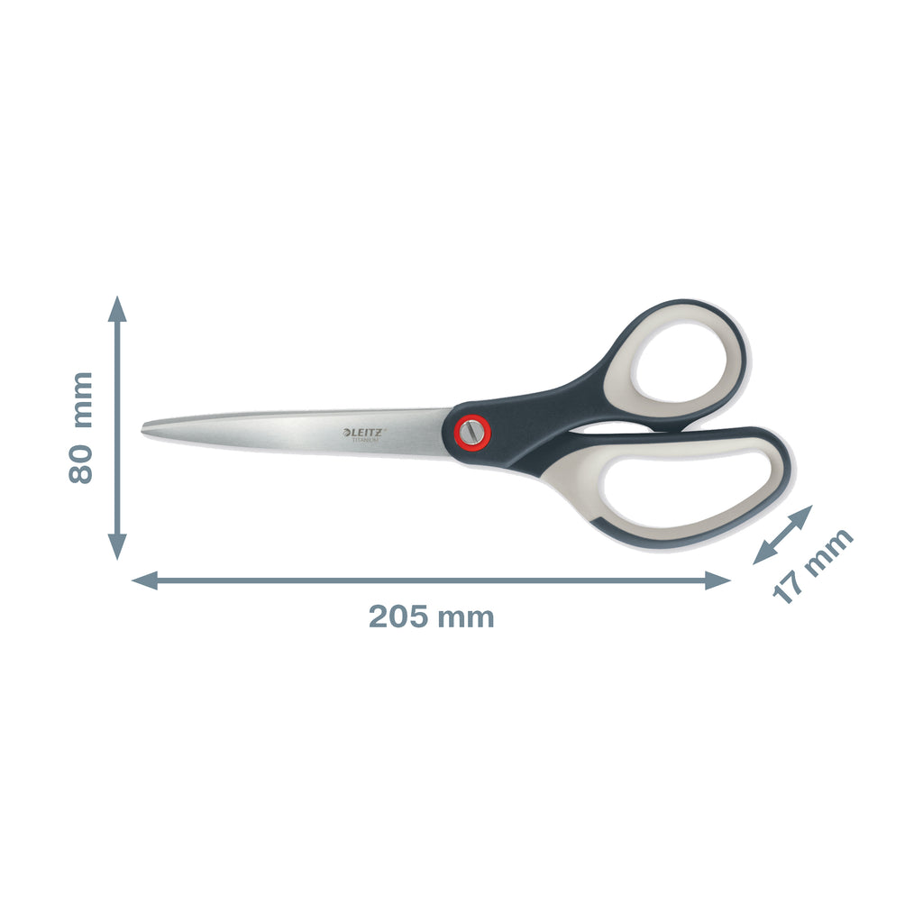 Forbici premium da 205 mm con impugnatura ergonomica. Acciaio inossidabile di alta qualita' con lame rivestite in titanio. Invitante design a due colori.