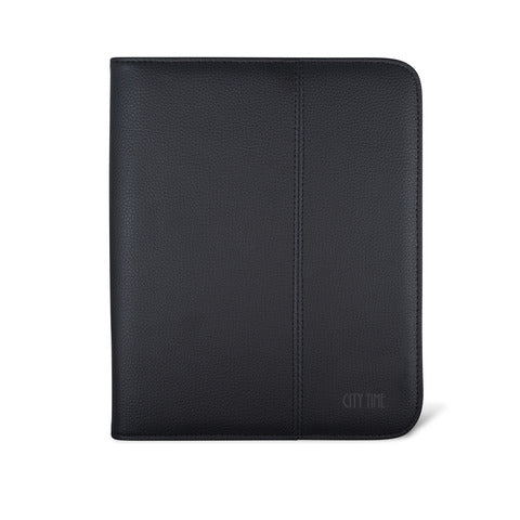 Portablocco ''Professional'' in similpelle morbido. Interno in tessuto a righe. Con cerniera e varie tasche interne. Completo di blocco. Formato 20,5x25 cm.