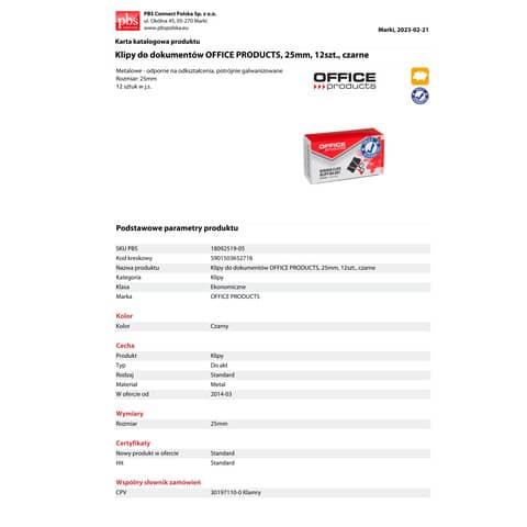 Molle fermacarte da 25 mm. Colore nero. Materiale metallo, resistente, elettrolitico. In confezione da 12 pezzi.