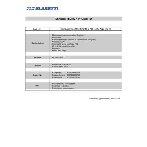 Maxi punto metallico One Color da 80 gr, carta FSC, 20+1 fogli.4 Mm 10 Mm 1r Rc 0q