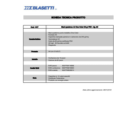- Specifiche articolo: maxi quaderno a punto metallico con copertina a tinta unita