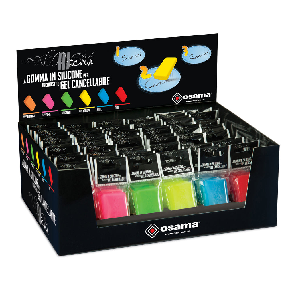 Gomma specifica in silicone per inchiostro gel cancellabile. Non lascia residui, non fora la carta. Adatta per scuola e ufficio. Colori assortiti.