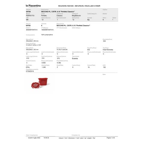 - Descrizione prodotto: 15 L