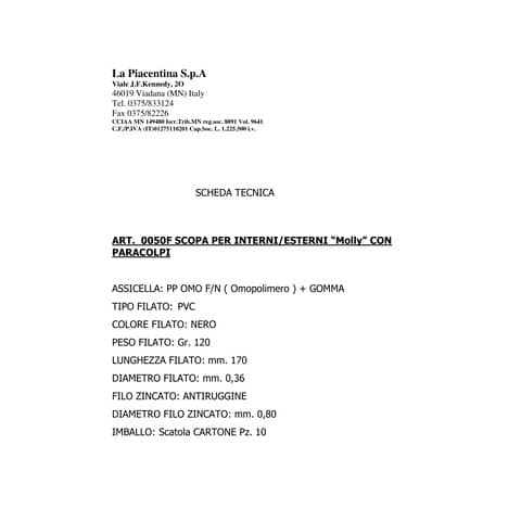 Scopa per interni Molly in fibre sintetiche con paracolpi antiurto. Manici compatibili codici 100786, 100787, 100788 e 100789.