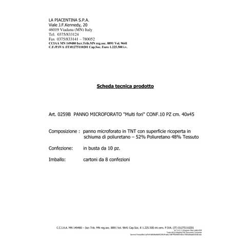 Panno microforato in Tessuto-non Tessuto 40x45 cm in confezione 10 pezzi per pulire o asciugare tutte le superfici. Superficie ricoperta in schiuma di poliuretano – 52% Poliuretano 48% Tessuto.