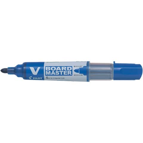 Marcatore per lavagna bianca, ad inchiostro liquido ad essicazione rapida, punta tonda in fibra di acrilico mm.6,00 - tratto 2,3 mm. Realizzato con il 91% di materiale riciclato, escluse le parti di ricambio. Colore blu.