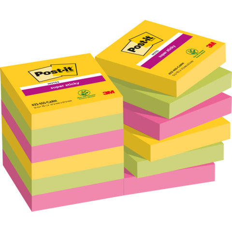 I Foglietti Post-it® Super Sticky hanno un'adesione più forte e durano di più. Hanno il doppio della forza adesiva dei foglietti Post-it® originali. Perfetti per superfici verticali e di difficile adesione, questi piccoli foglietti adesivi sono perfetti per appuntarsi un numero di telefono o un codice. Con i loro colori accesi (fucsia, verde neon, giallo) sono super resistenti e super versatili e realizzati per mettere in risalto i tuoi messaggi. Realizzati con carta certificata PEFC da foreste certificate, rinnovabili e gestite responsabilmente. L'adesivo è fabbricato al 60% con risorse rinnovabili da piante a ricrescita annuale. Questi foglietti adesivi misurano 47.6 mm x 47.6 mm e sono disponibili in confezioni da 12 blocchetti di 90 foglietti.