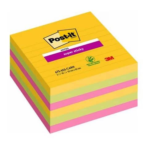 I Post it® Super Sticky Notes hanno un adesivo a tenuta più salda più a lungo rispetto alla maggior parte delle note adesive, così si è certi che il messaggio non rimanga inosservato. Perfetti per superfici verticali e di difficile adesione. Rendono efficace il vostro lavoro, semplificando la vita di tutti i giorni. Sono super resistenti, super versatili e offrono una visibilità super.
