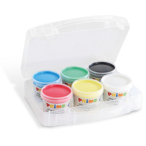PRIMO - Tempera a dita per tessuti 100 g - valigetta 6 colori primari in vasetti in polipropilene - 228TXD100SP