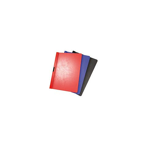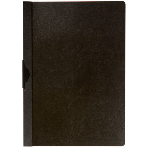 Cartellina con clip realizzata in robusto PVC. Capacità 30 fogli formato A4. Fronte trasparente e retro colorato, clip in metallo nero. Colore: nero.