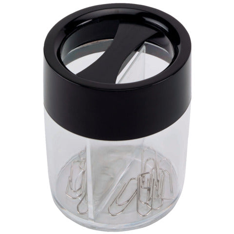 Questo pratico dispenser per fermagli rotondo Q-Connect ha una parte superiore magnetica, ideale per raccogliere e conservare i fermagli. Tieni i fermagli a portata di mano e facilmente accessibile sul desktop. Il dispenser è trasparente, ha un diametro di 60,4 mm ed è alto 72,5 mm.