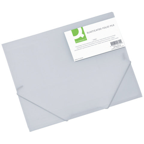 Cartellina a tre lembi in PP traslucido formato A4, con due elastici agli angoli. Dotata di dorso espandibile 0 - 3 cm. Colore: trasparente.