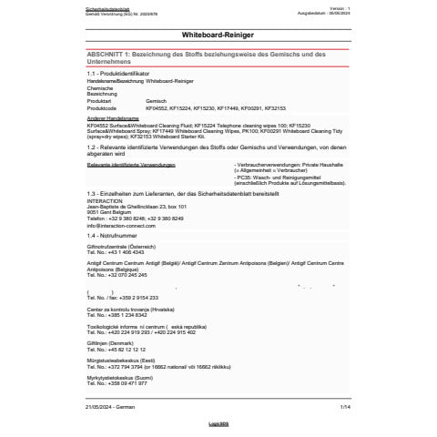 Liquido detergente per lavagne bianche. Erogatore a spruzzo. Non infiammabile, senza alcool. Flacone da 250 ml.