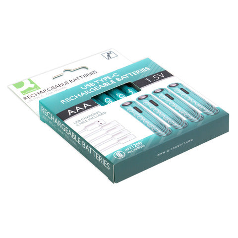 Batterie ricaricabili AAA. Grazie alla loro capacità di 750 mAh e a un voltaggio di 1,5 V sono ideali per tutti i dispositivi elettrici. Le porte USB-C consentono una ricarica facile e veloce, 2 ore circa, permettendo di avere le batterie sempre a disposizione e pronte all'uso. Cavo USB-C incluso per la ricarica in contemporanea di 4 batterie. Confezione composta da 4 pezzi blisterati.