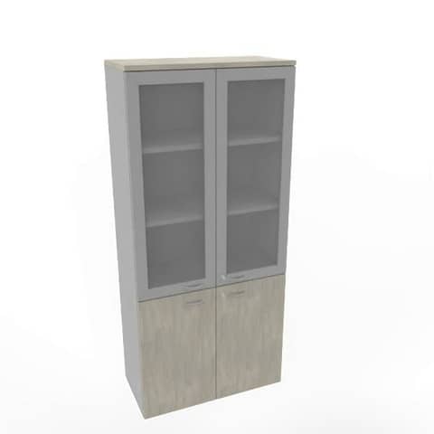 Armadio super con ante base melaminico e ante maxi in vetro e scocca in pannello di conglomerato ligneo spessore 18 mm, rivestito su entrambi i lati con pannello melaminico antiriflesso, antigraffio e lavabile. Fianchi e fondo spessore 18 mm con bordatura sui 4 lati in tinta. Schienale spessore 8 mm. Ripiani spessore 25 mm con bordatura 4 lati in tinta e reggipiani a scomparsa spostabili in altezza ogni 32 mm. Coperchio spessore 25 mm con bordatura 3 lati in vista in ABS antiurto, in tinta, spessore 2 mm. N. 5 piedini livellatori in ABS regolabili in altezza dall'interno del mobile. Ante battenti in pannello di conglomerato ligneo spessore 18 mm rivestito con melaminico antiriflesso, antigraffio e lavabile, bordato sui 4 lati in ABS antiurto in tinta spessore 1,5 mm. Cerniere in metallo con apertura a 105°. Serratura con chiave pieghevole antinfortunistica. Ante telaiate in vetro trasparente spsessore 4 mm con telaio perimetrale sezione 60x18mm in MDF (Medium Density Fiberboard, un pannello di fibra a media densità, un materiale ecologico) rivestito. Cerniere in metallo con apertura 105°. Serratura con chiave pieghevole antifortunistica. Scocca in melamina trama antracite. Finiture cemento. Dimensione: 90x45xH.200 cm. Quadrifoglio Sistemi d'Arredo presta particolare attenzione alle tematiche della qualità, dell’ambiente e della sicurezza per fornire un prodotto e un servizio all’altezza delle aspettative del mercato. L’azienda ha raggiunto le certificazioni UNI EN ISO 9001/2015, UNI EN ISO 14001/2015 e UNI EN ISO 45001/2018. Nel rispetto e nella tutela dell’ambiente, i prodotti Quadrifoglio sono certificati e garantiti da FSC™ e PANNELLO ECOLOGICO.