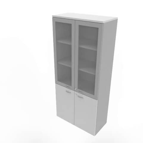 QUADRIFOGLIO - Armadio alto con ante basse grigio e alte in vetro telaio mdf scocca argento 90x45xh.200 cm - ECE490T-GR-AA-V3