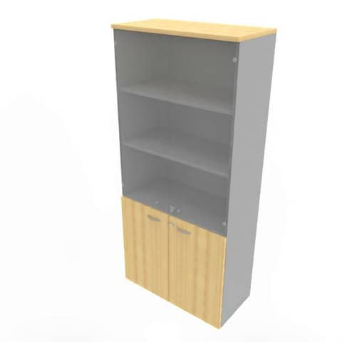 QUADRIFOGLIO - Armadio alto con ante basse faggio e alte in vetro scocca argento 90x45xh.200 cm practika - ECE490V-FA-AA-GE
