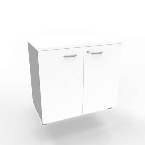 QUADRIFOGLIO - Armadio basso altezza scrivania ante bianche scocca argento 80x45xh.73 cm practika - ECEB80B-BA-AA-BA