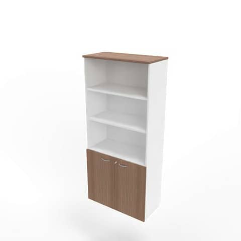 QUADRIFOGLIO - Armadio alto ante basse noce canaletto scocca bianca 90x45xh.200 cm linea practika - ECEB90S-NO-BA-NO