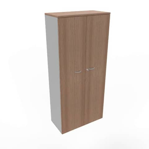 Armadio super con ante base battenti e scocca in pannello di conglomerato ligneo spessore 18 mm, rivestito su entrambi i lati con pannello melaminico antiriflesso, antigraffio e lavabile. Fianchi e fondo spessore 18 mm con bordatura sui 4 lati in tinta. Schienale spessore 8 mm. Ripiani spessore 25 mm con bordatura 4 lati in tinta e reggipiani a scomparsa spostabili in altezza ogni 32 mm. Coperchio spessore 25 mm con bordatura 3 lati in vista in ABS antiurto, in tinta, spessore 2 mm. N. 5 piedini livellatori in ABS regolabili in altezza dall'interno del mobile. Ante battenti in pannello di conglomerato ligneo spessore 18 mm rivestito con melaminico antiriflesso, antigraffio e lavabile, bordato sui 4 lati in ABS antiurto in tinta spessore 1,5 mm. Cerniere in metallo con apertura a 105°. Serratura con chiave pieghevole antinfortunistica. Scocca tessuto antracite. Finiture noce canaletto. Dimensione: 90x45xH.200 cm. Quadrifoglio Sistemi d'Arredo presta particolare attenzione alle tematiche della qualità, dell’ambiente e della sicurezza per fornire un prodotto e un servizio all’altezza delle aspettative del mercato. L’azienda ha raggiunto le certificazioni UNI EN ISO 9001/2015, UNI EN ISO 14001/2015 e UNI EN ISO 45001/2018. Nel rispetto e nella tutela dell’ambiente, i prodotti Quadrifoglio sono certificati e garantiti da FSC™ e PANNELLO ECOLOGICO.
