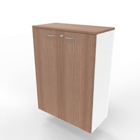 QUADRIFOGLIO - Armadio medio con ante noce canaletto scocca bianca 90x45xh.123,2 cm linea practika - ECEM90M-NO-BA-NO