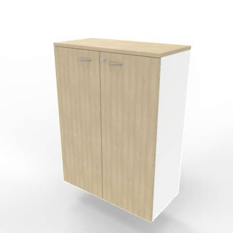 QUADRIFOGLIO - Armadio medio con ante battenti rovere scocca bianca 90x45xh.123,2 cm linea practika - ECEM90M-RK-BA-RK