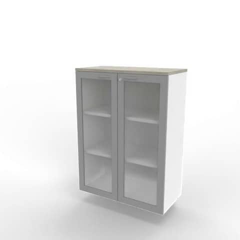 QUADRIFOGLIO - Armadio medio ante vetro telaio mdf, top cemento scocca bianca 90x45xh.123,2 cm practika - ECEM90T-CL-BA-V3