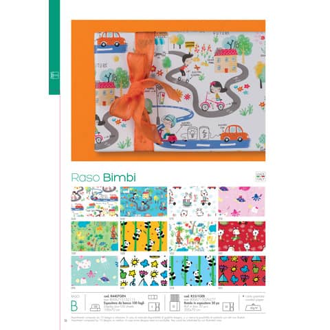 Carta regalo da 60 g/mq in scatola da 100 fogli 70x100 cm (piegati 25x35 cm). Disegni assortiti. Fantasia bimbi.