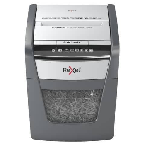 Il distruggidocumenti optimum autofeed+ 50x con taglio a frammenti distrugge automaticamente fino a 50 fogli a4 (80 gr/mq) alla volta, con un livello di sicurezza p-4 (4x28mm). Questo distruggidocumenti automatico puo' essere utilizzato sia a casa sia in ufficio grazie al suo cestino compatto da 20 litri. Non e' necessario alimentare manualmente la carta o rimuovere prima i punti e le graffette, questo distruggidocumenti automatico fara' tutto il lavoro per te.