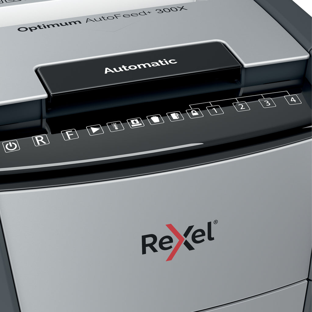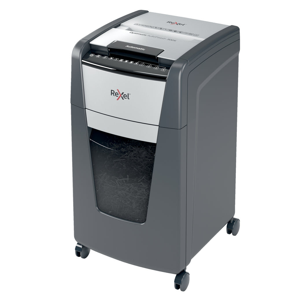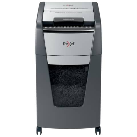 Il distruggidocumenti optimum autofeed+ 300x con taglio a frammenti distrugge automaticamente fino a 300 fogli a4 (80 gr/mq) alla volta, con un livello di sicurezza p-4 (4x25mm). Questo distruggidocumenti automatico puo' essere utilizzato sia a casa sia in ufficio grazie al suo cestino compatto da 60 litri. Non e' necessario alimentare manualmente la carta o rimuovere prima i punti e le graffette, questo distruggidocumenti automatico fara' tutto il lavoro per te.
