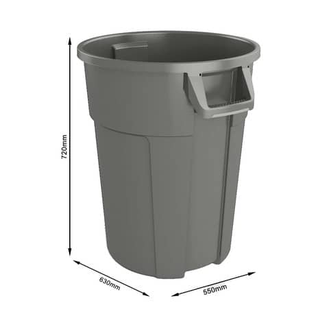 Pattumiera TITAN da 120 LT con coperchio per raccolta differenziata. Ideale anche per uso esterno, molto robusta e resistente. Prodotto dotato di maniglie superiori per facilitare spostamento e manovra e di maniglie inferiori a scomparsa per agevolare sollevamento e spostamenti. Facile da pulire, lavare e disinfettare. Colore grigio. Dimensioni: 550 x 630 x 720 m.