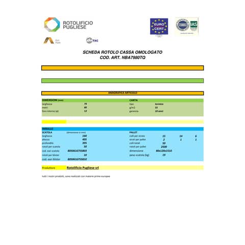- Tipo di carta: termica
