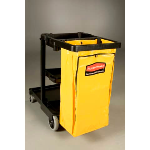 Carrello Janitor superficie liscia, semplice da pulire. Sacco giallo con zip (92 l) in dotazione per un’eliminazione semplice dei rifiuti. Ruote antitraccia fisse da 20,1 cm e rotelle girevoli da 10,2 cm. Scomparto con serratura opzionale per conservare in sicurezza i prodotti per la pulizia. La piattaforma anteriore può portare un secchio doppio, singolo o un contenitore da 121 L. Vano di stoccaggio incorporato nel coperchio per riporre utensili o accessori. Formato 116,8x55,2x97,5 cm.