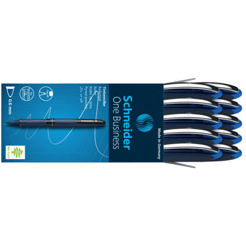 La nuova generazione di roller a inchiostro: “One”. Il suo sistema Super-Flow assicura un flusso d’inchiostro uniforme dall’inizio alla fine. L’inchiostro è contenuto nel serbatoio in forma liquida, il che consente di ottenere un’elevata capacità e nulla rimane intrappolato nelle fibre. Un sistema di regolazione compensa gli sbalzi di pressione e temperatura dell’aria e protegge la penna contro le fuoriuscite d’inchiostro. One Business, Penna roller con sistema Super-Flow per un afflusso d’inchiostro uniforme e un’esperienza di scrittura unica. Punta Ultra-Smooth per una scrittura altamente scorrevole, tratto di 0,6 mmIndelebile a norma ISO 14145-2. Flusso d'inchiostro uniforme dall'inizio alle fine Grande serbatoio d'inchiostro con indicatore di livello Inchiostro ''Cap-off'', può essere lasciato aperto 2-3 giorni senza rischio di essicazione Superficie in gomma sagomata di forma ergonomica Clip in metallo di alta qualità. Colore blu.