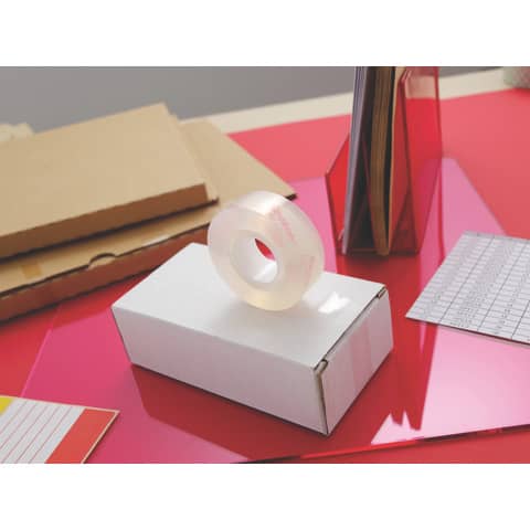 Nastro adesivo supertrasparente con supporto in acetato di cellulosa, resistente e di lunga durata. Non teme l'umidita, si taglia con le mani, è scrivibile e molto silenzioso. Non ingiallisce con il tempo. Un ottimo nastro multiuso che combina un'elevata trasparenza con un'applicazione duratura. Disponibile in varie larghezze e lunghezze, compatibile con un'ampia gamma di dispenser.