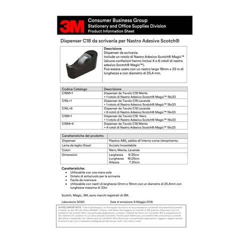 - Altre caratteristiche: dispenser + 1 rotolo di nastro adesivo Scotch® Magic™ 19mm. x33 mt