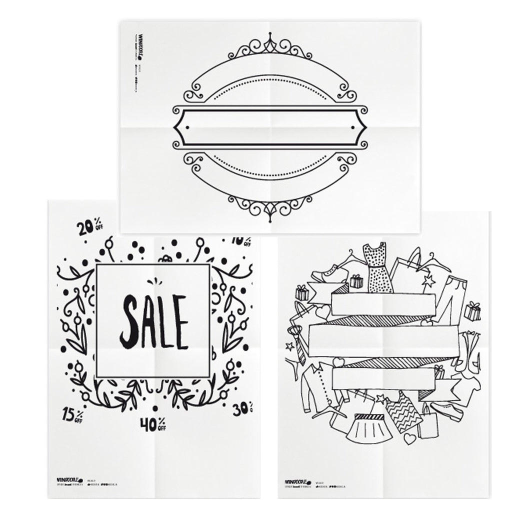 Set stencil a tema sconti / offerte, ideali per decorare le vetrine. Su fogli in carta dimensione a2.