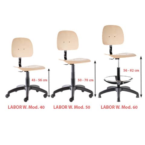 SEDITALY - Sgabello tecnico labor wood 60 in legno di faggio verniciato naturale alto poggiapiedi regolabile - LBD0F0000L119